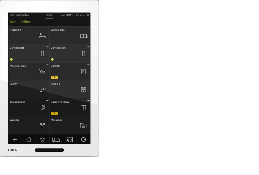 The Gira G1 is the premium solution with a 7-inch display, advanced sensor technology, HomeServer compatibility and more visualisation options. The Gira G1 XS is more compact, offers a 6-inch display and focuses on essential Smart Home functions, making it ideal for cost-optimised projects. Both devices support Gira One, Gira X1, KNX Secure and door communication via DCS or SIP.