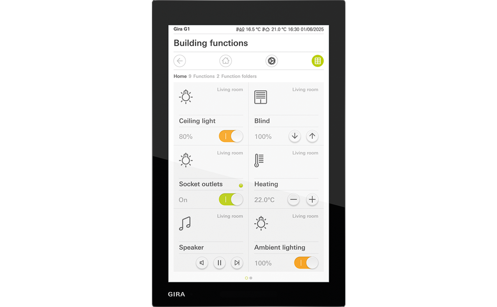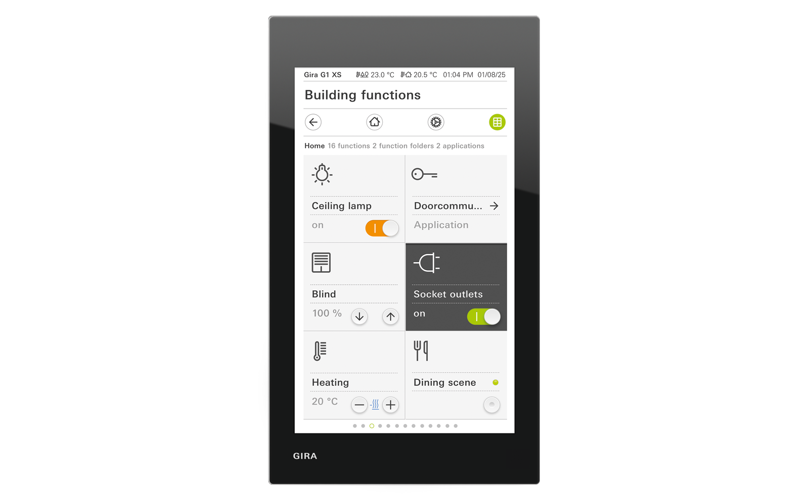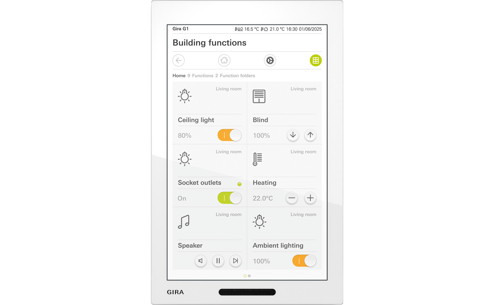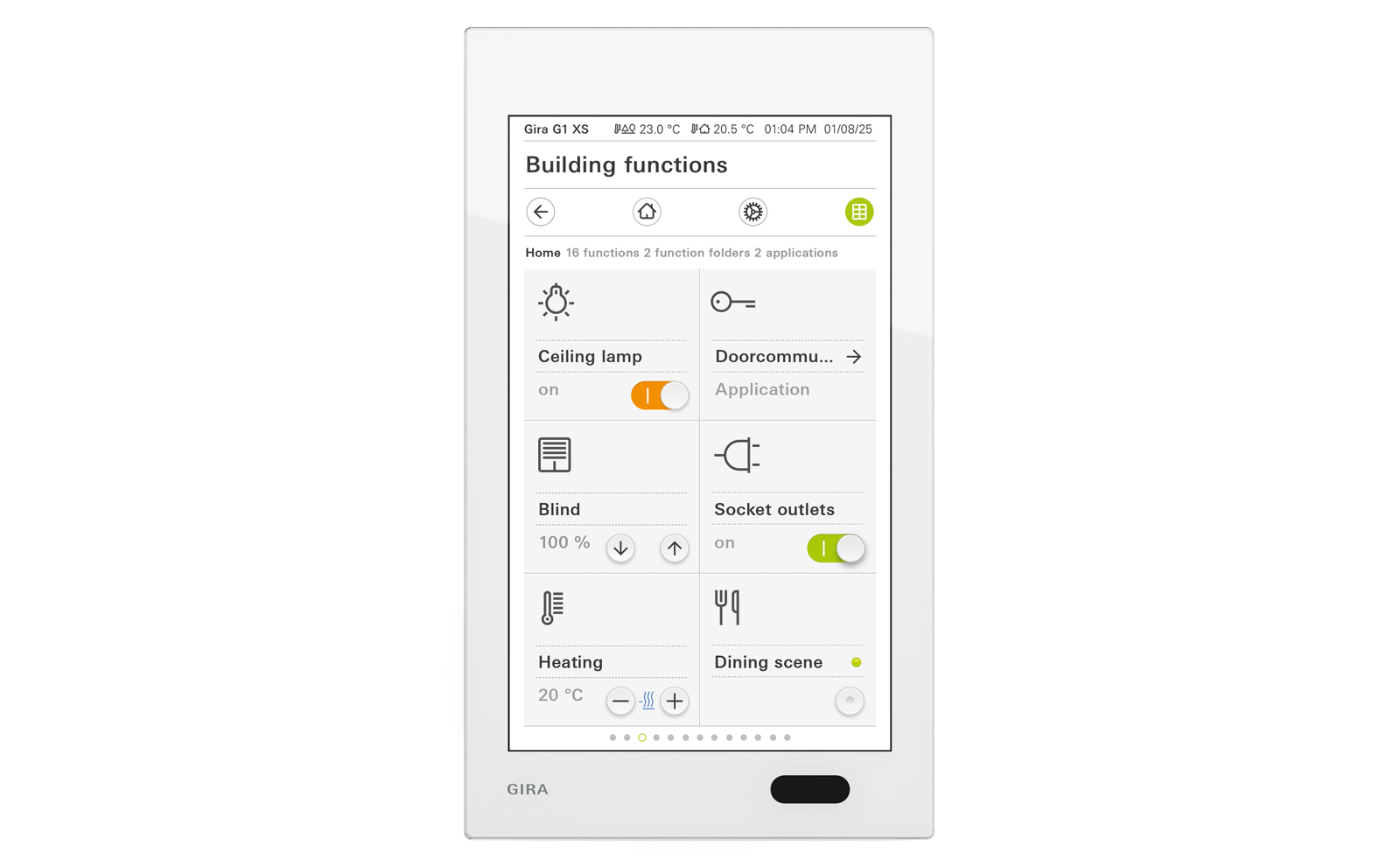 The Gira G1 is ideal for projects with high demands on visualisation, customisation and multi-functionality. The Gira G1 XS is recommended for new buildings or renovations focusing on streamlined, cost-effective Smart Home control without compromising on design, security or ease of use.